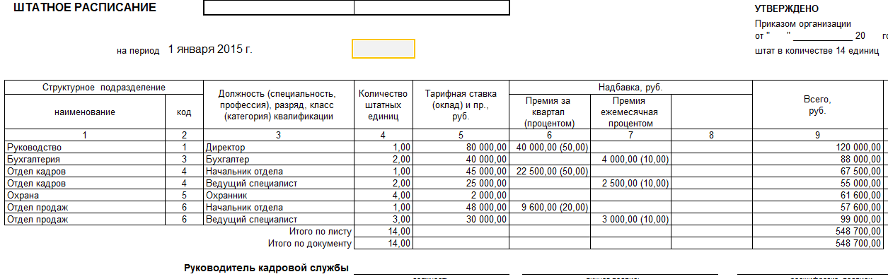 Штатное расписание примет следующий вид: