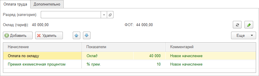 Для позиций, в которых установлена Ежемесячная премия, "Вклад в ФОТ" будет заполнен автоматически: