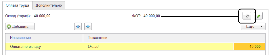 Если показатели начисления известны (например, процент надбавки к окладу составляет 15%), то ФОТ рассчитывается автоматически или по кнопке "Пересчитать".