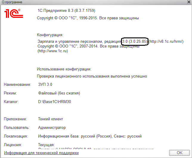 "1С:Зарплата и Управление Персоналом" версия 3.0.25.85.
