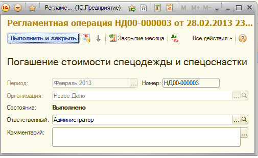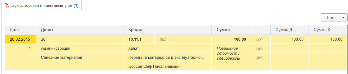 Практикум № 43 29 февраля погасить стоимость халата директора регламентной операцией «Закрытие месяца».