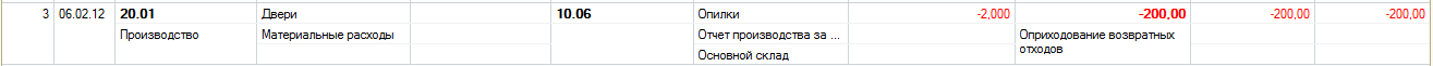 Обратите внимание на тот факт, что в документе «Отчет производства за смену» на закладке «Возвратные отходы» указываются возвратные отходы лишь для целей уменьшения себестоимости готовой продукции. В силу этого документ формирует бухгалтерские и налоговые проводки как запись «сторно»: