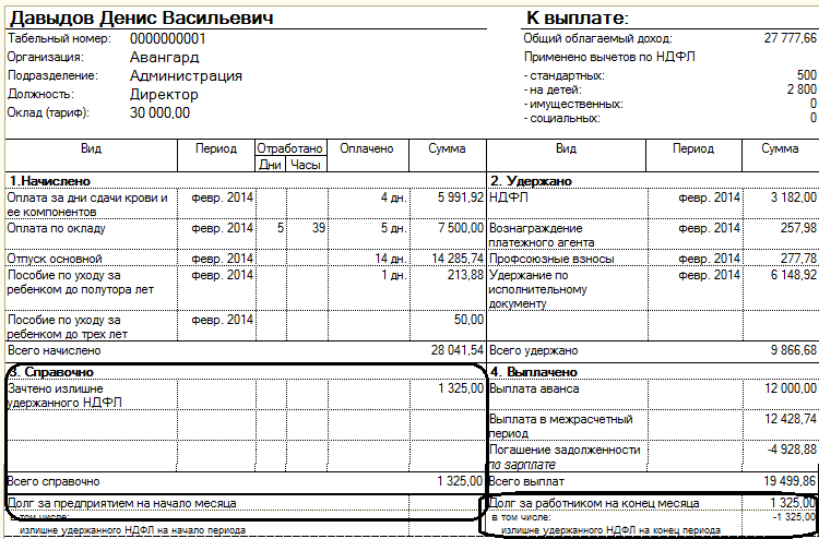 Если у сотрудника в последующих месяцах будут рассчитаны суммы налога, то излишне удержанный НДФЛ будет зачитываться в счет платежей помесячно.