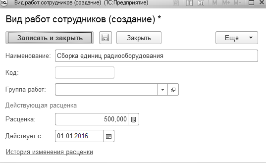 Справочник содержит перечень всех производственных технологических операций, применяемых в организации, и предназначен для учета оплаты сдельного труда. Для каждого вида работ, оплачиваемого сдельно, в справочнике указывается стоимость за единицу работ, при этом сохраняется история изменения данных расценок.