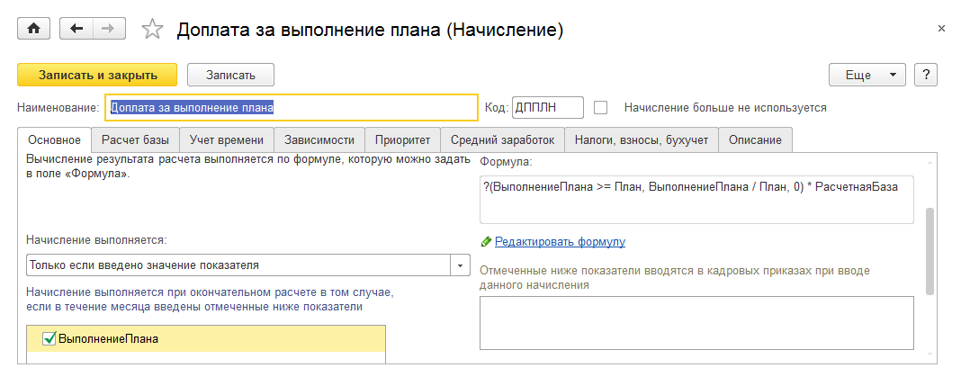 Ввод данных для расчета доплаты за выполнение плана