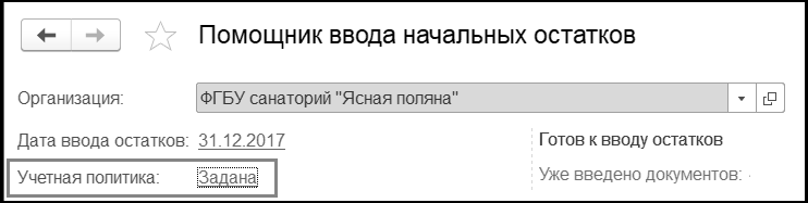 учетной политики определены, можно приступать к вводу остатков.