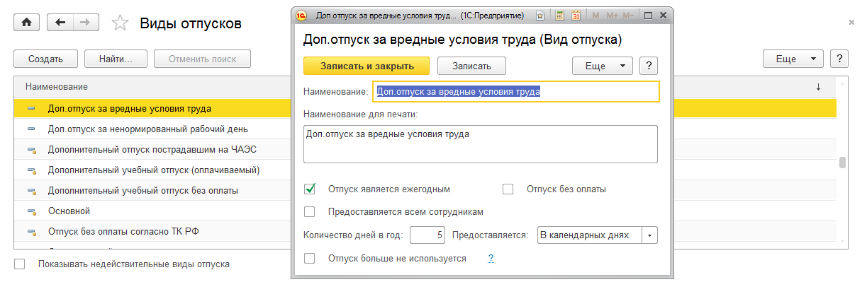 Добавим в справочников видов отпусков два вида отпуска :
