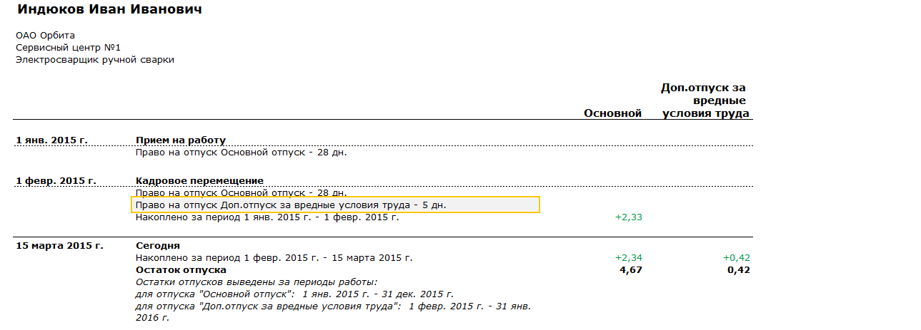 С 01.02.15 для позиции - Электросварщик ручной сварки устанавливается доп.отпуск за вредные условия труда,