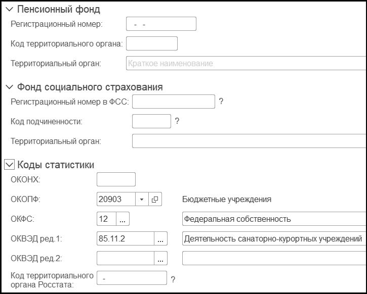 В группе реквизитов Коды статистики следует указать: