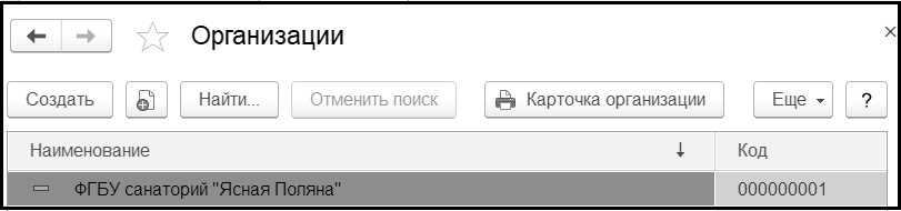 Справочник Организации имеет следующий вид:
