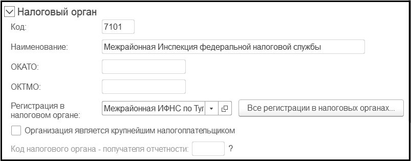 Группа реквизитов Налоговый орган: