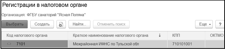 По кнопке Создать вводится новый элемент справочника Регистрация в налоговом органе: