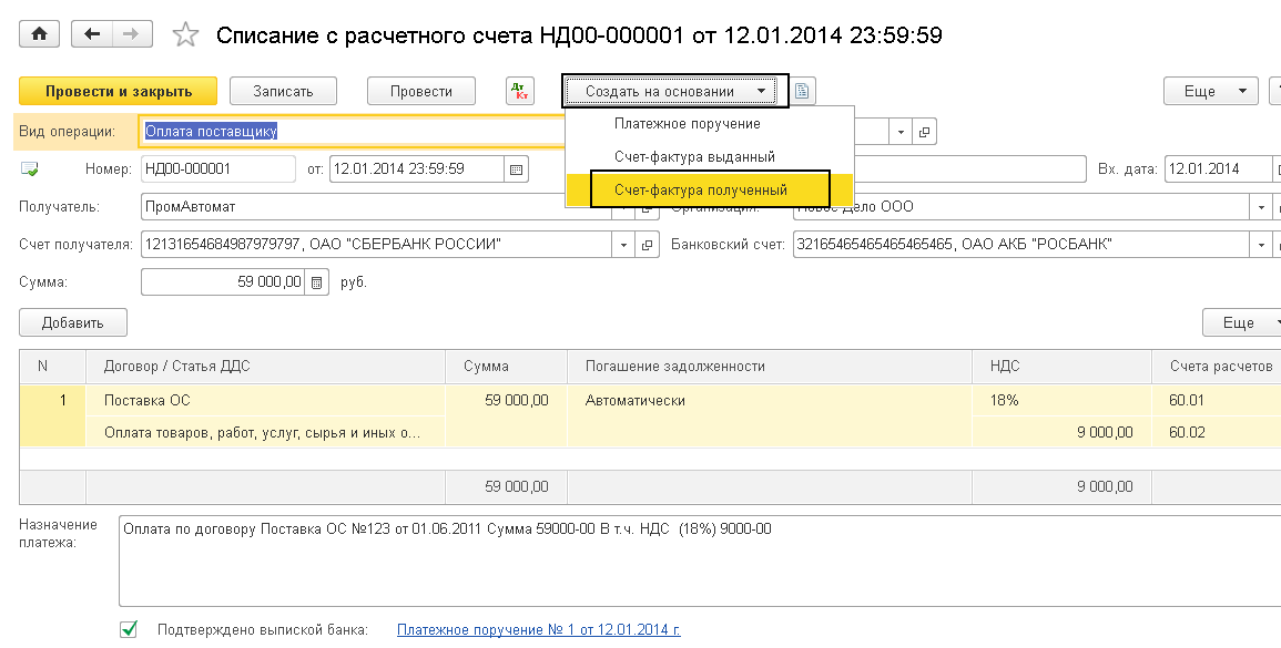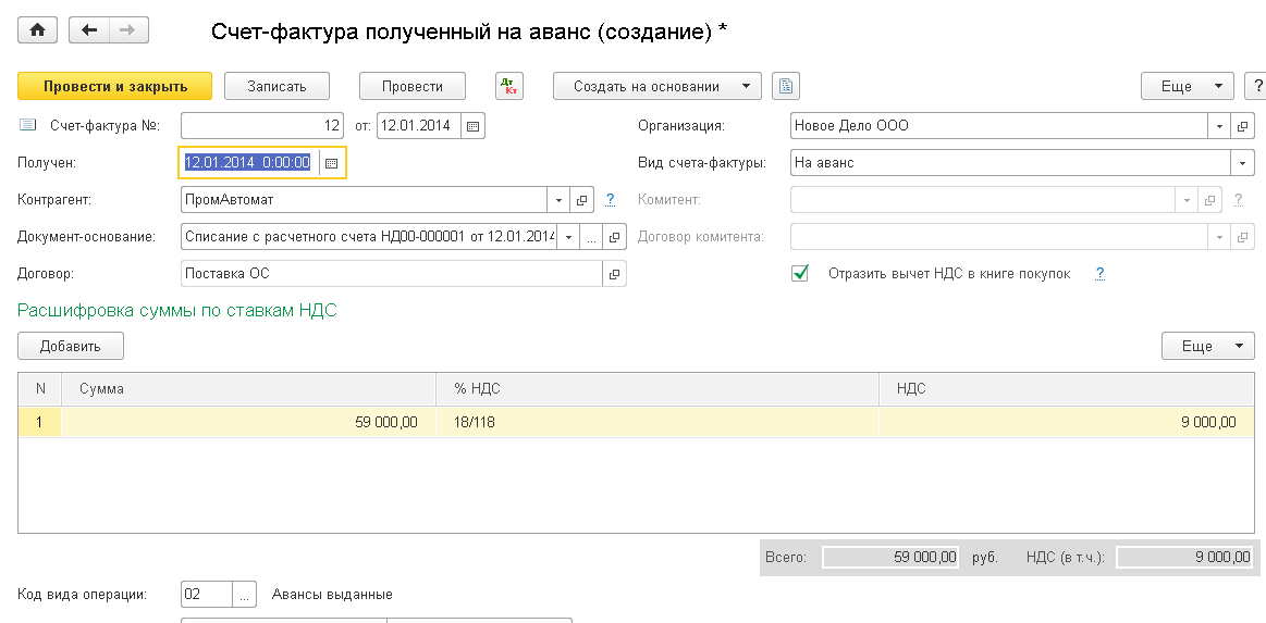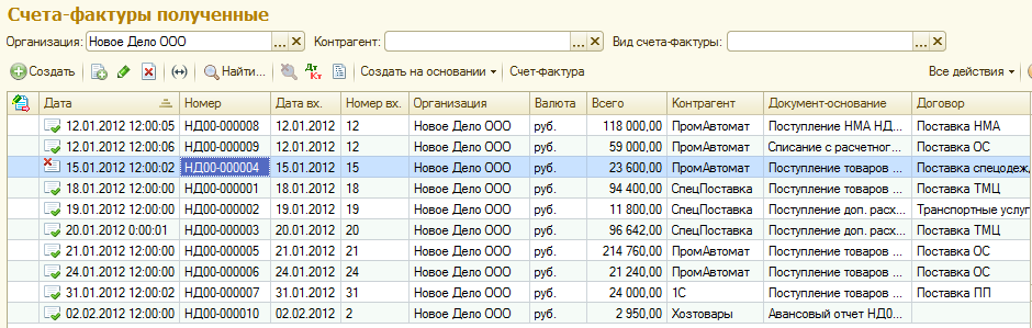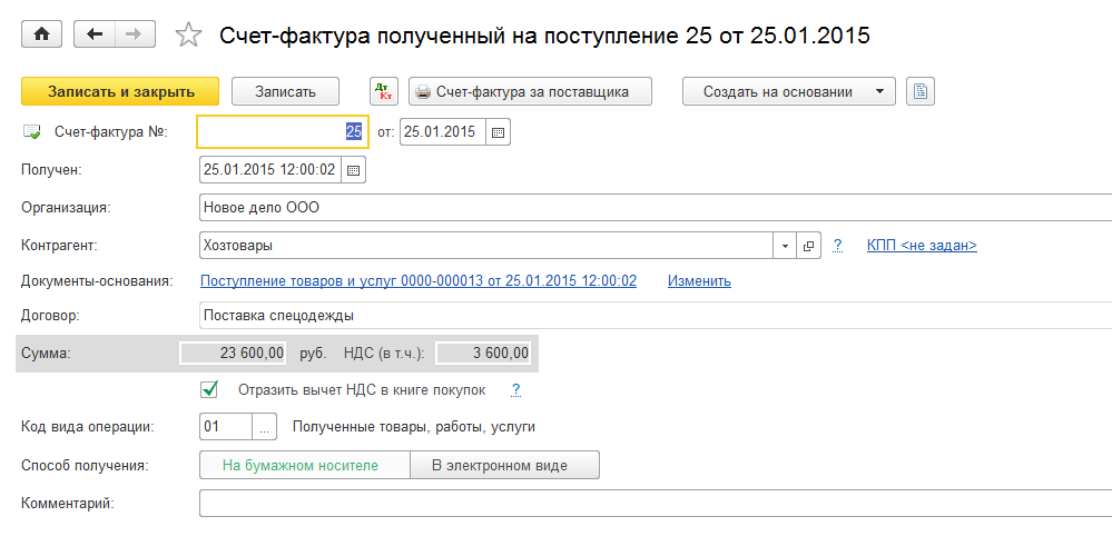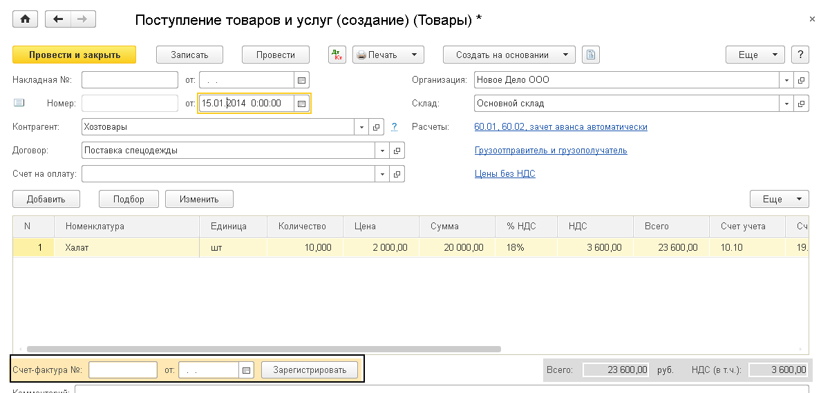 1. Зарегистрировать счета-фактуры по документам поставок.