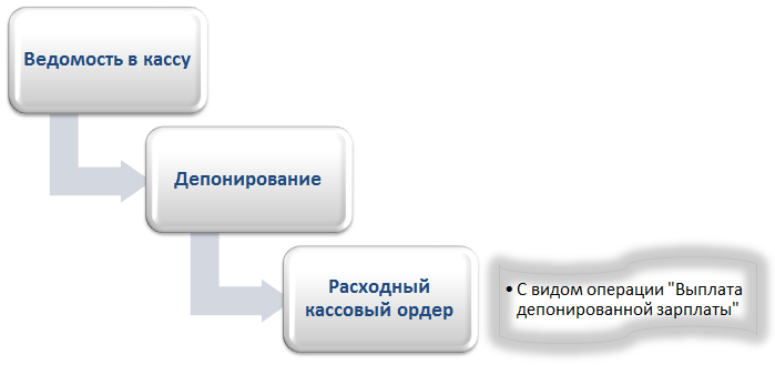 В случае, если в организации производится депонирование заработной платы, то схематично отразить порядок документооборота можно следующим образом: