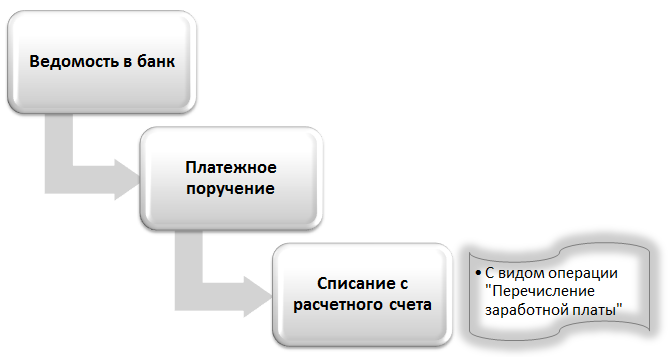 При выплате заработной платы через банк порядок документооборота в программе будет следующим: