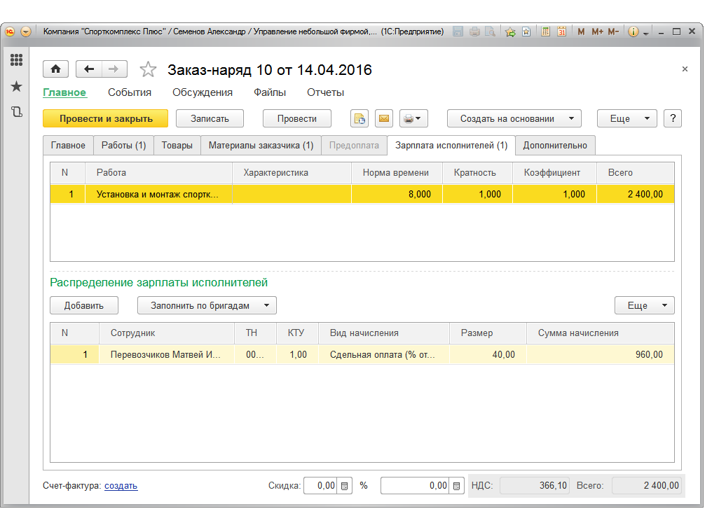 Итак, работа выполнена, осталось закрыть заказ-наряд и отразить продажу.