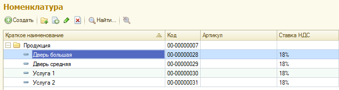 В справочник «Номенклатура» в папку «Продукция» добавьте следующие элементы:
