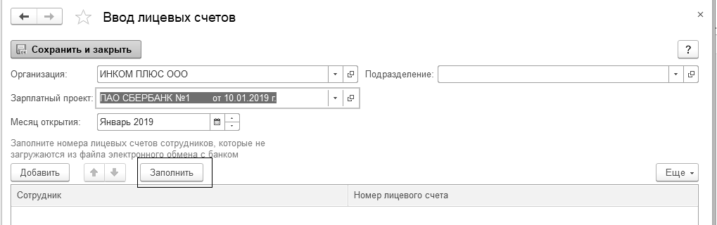 - массовый ввод номеров лицевых счетов всех сотрудников, у которых счета уже были открыты на момент начала использования электронного обмена в программе;