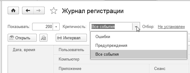 В журнале можно осуществлять отборы по ошибкам (рис. 1.9.2.2).