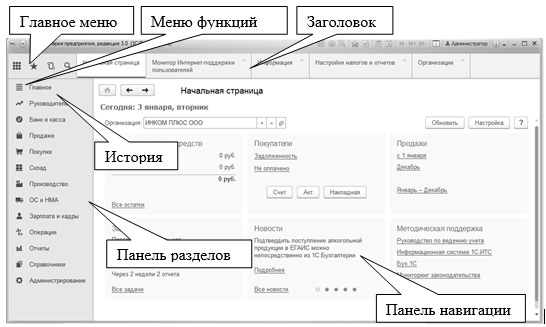 Рис. 1.2.1. Главное окно программы "1С:Бухгалтерия 8"