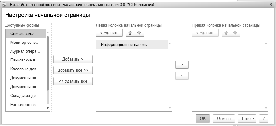 Существует возможность выбрать другую форму для начальной страницы. Например, "Список задач" или "Монитор основных показателей". Для этого в главном меню нужно выполнить команду "Вид/Настройка начальной страницы" (рис. 1.2.3).