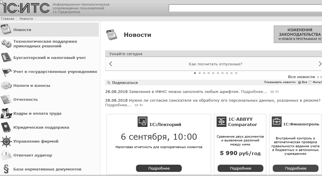 Рис. 1.2.7. Обращение к сервису "Информационная система 1С:ИТС".