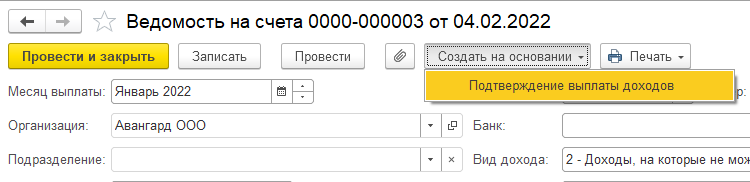 Вариант Б – введя на основании ведомости документ "Подтверждение выплаты доходов", если ведомость по тем или иным причинам уже нельзя перепровести.