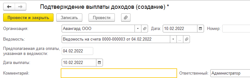 Если же ведомость на выплату создана от одной даты, а реальная выплата была произведена позднее, то дату выплаты можно уточнить: