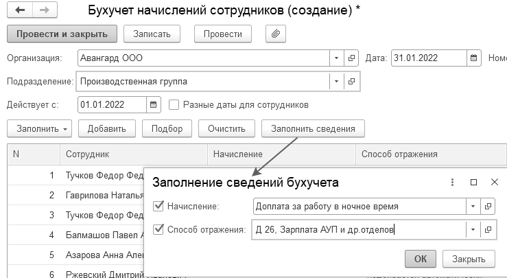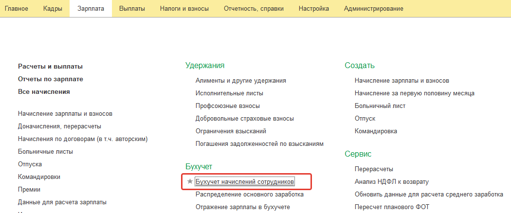 Бухучет начислений сотрудников