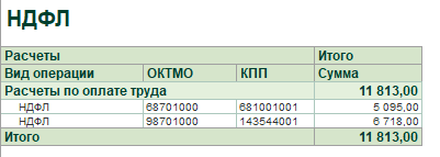 Обратите внимание, что НДФЛ учтен по нескольким ОКТМО