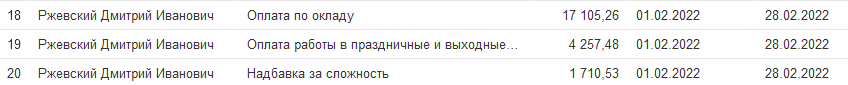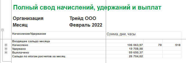 Свод начисленной зарплаты по ООО "Трейд" за февраль