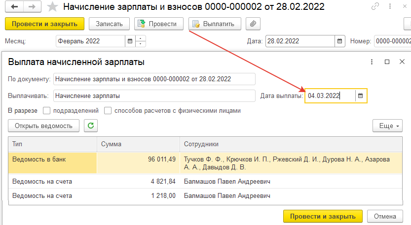 Выплата зарплаты. Анализ взаиморасчетов