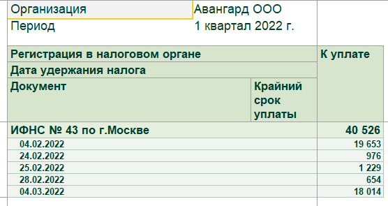 Аналогично можем увидеть сумму удержанного налога по датам в отчете "Удержанный НДФЛ".