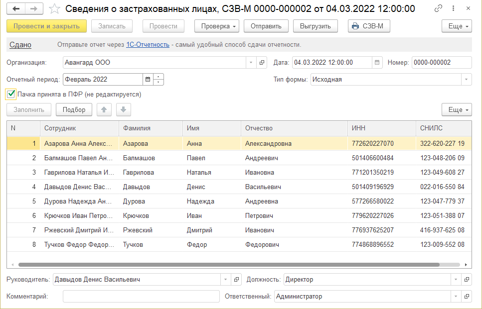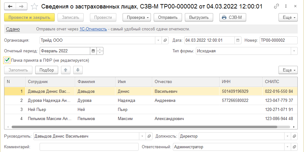 Формирование ежемесячных отчетов СЗВ-М, уплата взносов в ФСС