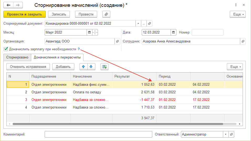 В работе иногда возникает ситуация, когда необходимо отменить влияние на учет документа, введенного в одном из предыдущих периодов, – сторнировать этот документ в полном объеме. Например, документ ошибочно введен не тому сотруднику.