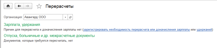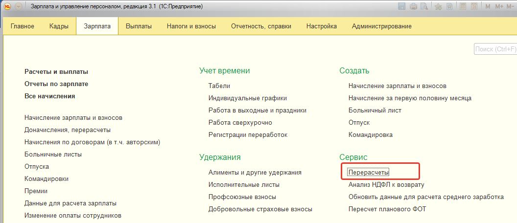 Для выполнения перерасчета необходимо проанализировать, какие возможности для этого существуют в программе.