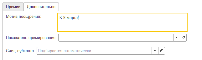 При заполнении можно сначала подобрать список сотрудников, а затем воспользоваться командой "Заполнить показатели", т.к. размер премии у всех одинаков.