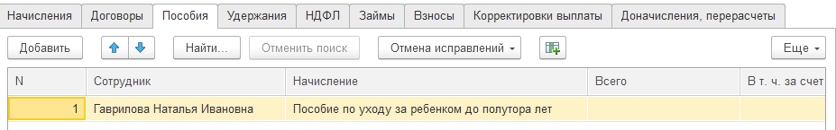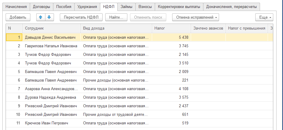 Начисление зарплаты. Окончательный расчет начислений и удержаний, а также НДФЛ и взносов выполняется в документе "Начисление зарплаты и взносов".
