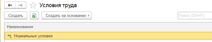 По умолчанию в справочнике заполнен элемент с нормальными условиями труда.