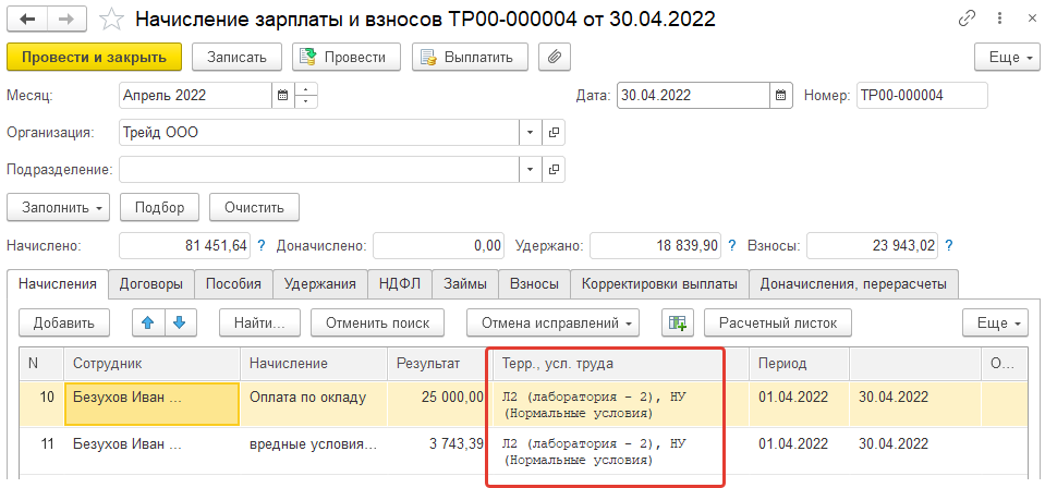 6. Все настройки будут учтены при начислении зарплаты и взносов и формировании отчетности.