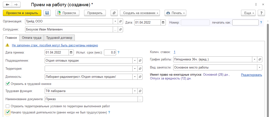 Обратите внимание, что с момента приема во вредные условия начинается "отсчет" льготного стажа для отчетности ПФР.