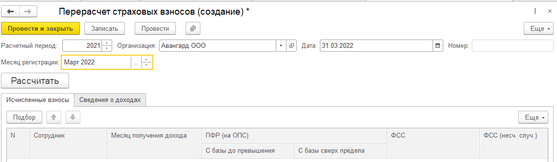 Документ "Перерасчеты страховых взносов" может использоваться для закрытых отчетных периодов (либо для уволенных сотрудников, по которым не выполняется расчет обычным образом).
