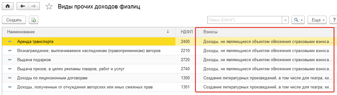Такая же возможность существует для прочих доходов (справочники из раздела "Выплаты", виды авторских договоров).
