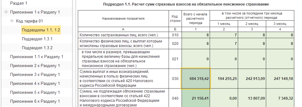 Этот отчет по сути заменил собой использовавшиеся ранее формы РСВ-1, РСВ-2, РВ-3, 4-ФСС в части взносов на обязательное социальное страхование (по временной нетрудоспособности и пр.).