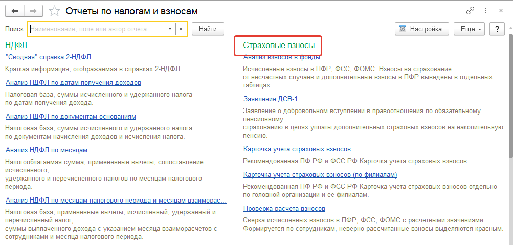 Дополнительно к указанным отчетам можно формировать Карточку учета страховых взносов (общая либо по филиалам).
