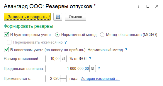 6. В настройках кадрового учета включена возможность ведения штатного расписания.