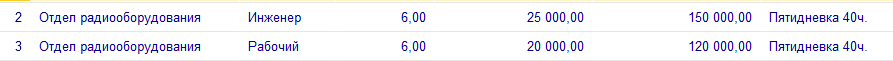 7. В справочнике "Графики работы сотрудников" добавлен график "Пятидневка".