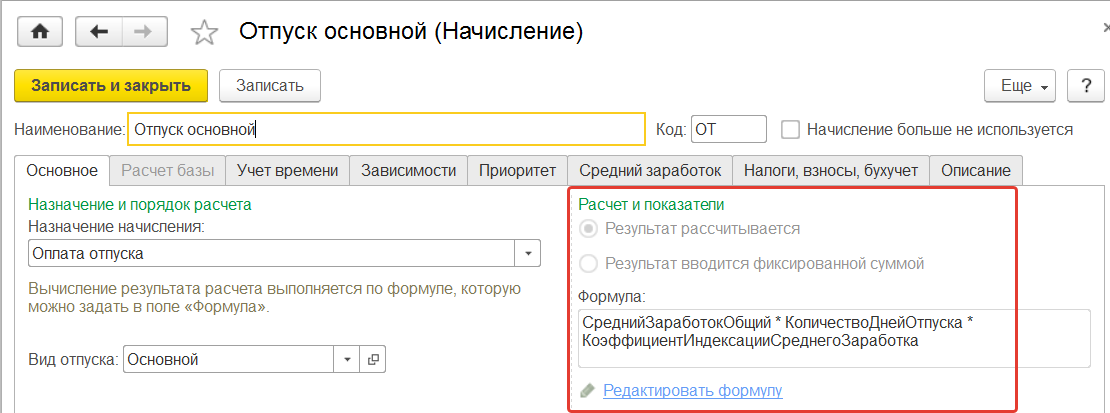 Сохраним формулу по команде ОК. Остальные настройки оставим по умолчанию. Запишем и закроем начисление._________________________________________________