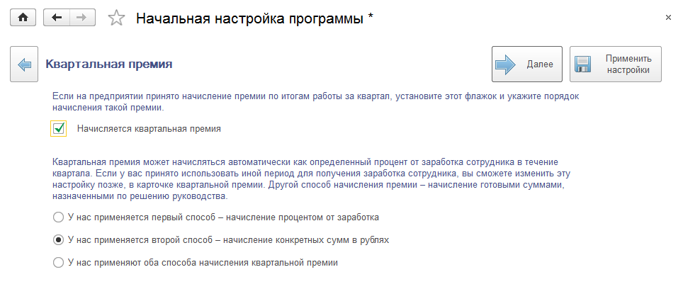 11. Добавляются новые начисления-премии в списках начислений (отдельной настройки нет, помощник добавления новых видов расчета).