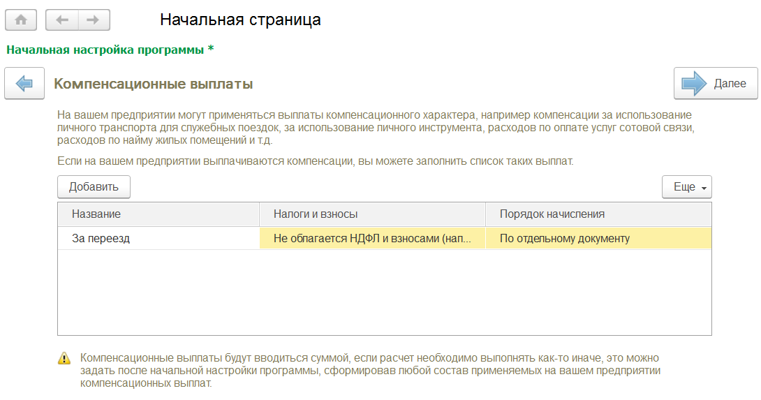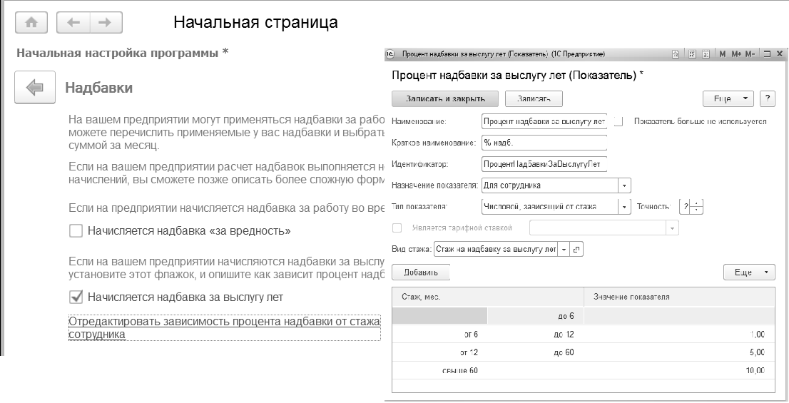 12. Настройка надбавок и компенсаций. Надбавка за вредность включается в настройках расчета зарплаты, остальные начисления добавляются помощником в список видов расчета.